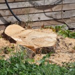 Erde geebnet, Rasen gemäht und morsches Holz angeschaut
